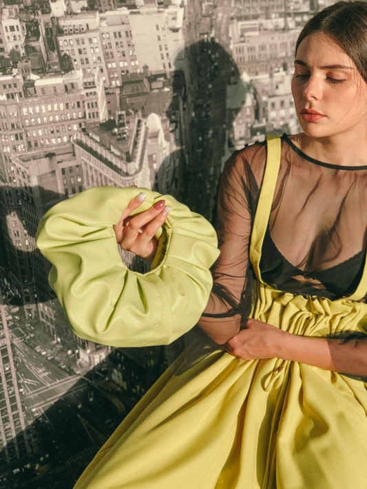 Drawstring Pinafore in Fluoro Yellow by Ultramarine Studio