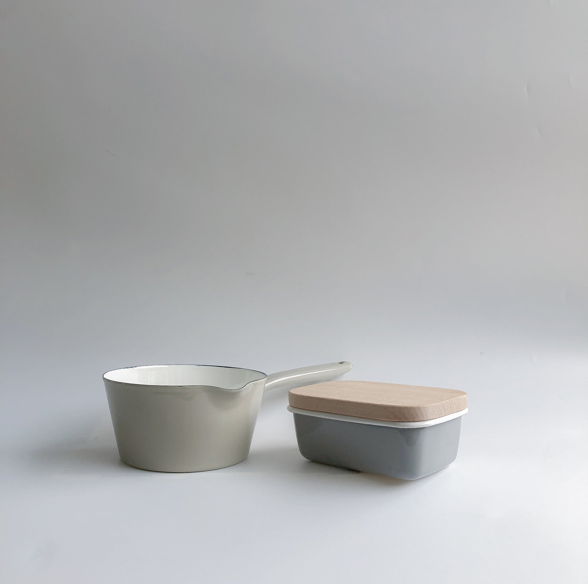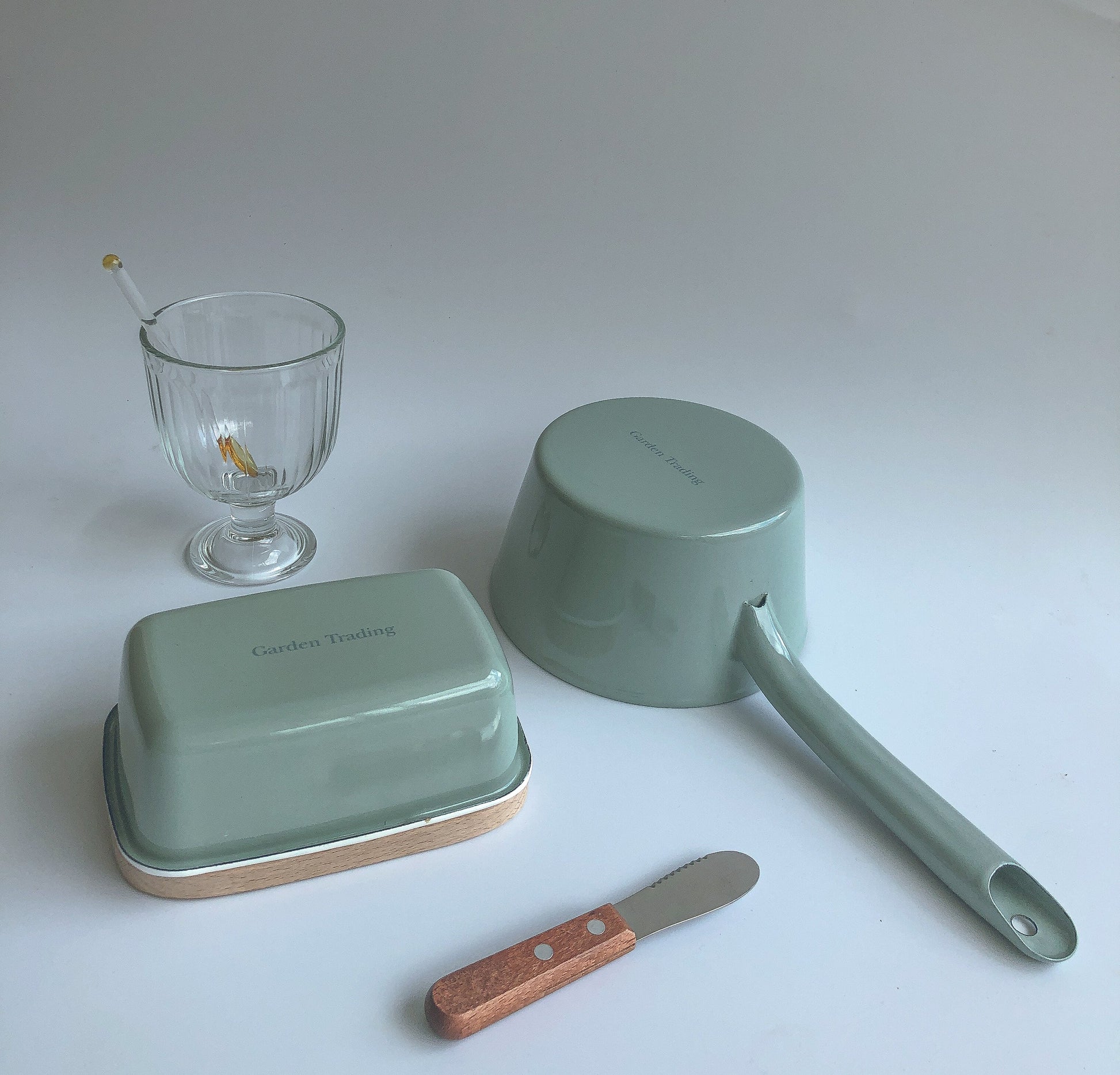 Store in our traditional Enamel Butter Dish. Fitting a 250g block of butter, the wooden lid also doubles as a base, to store just how you like.