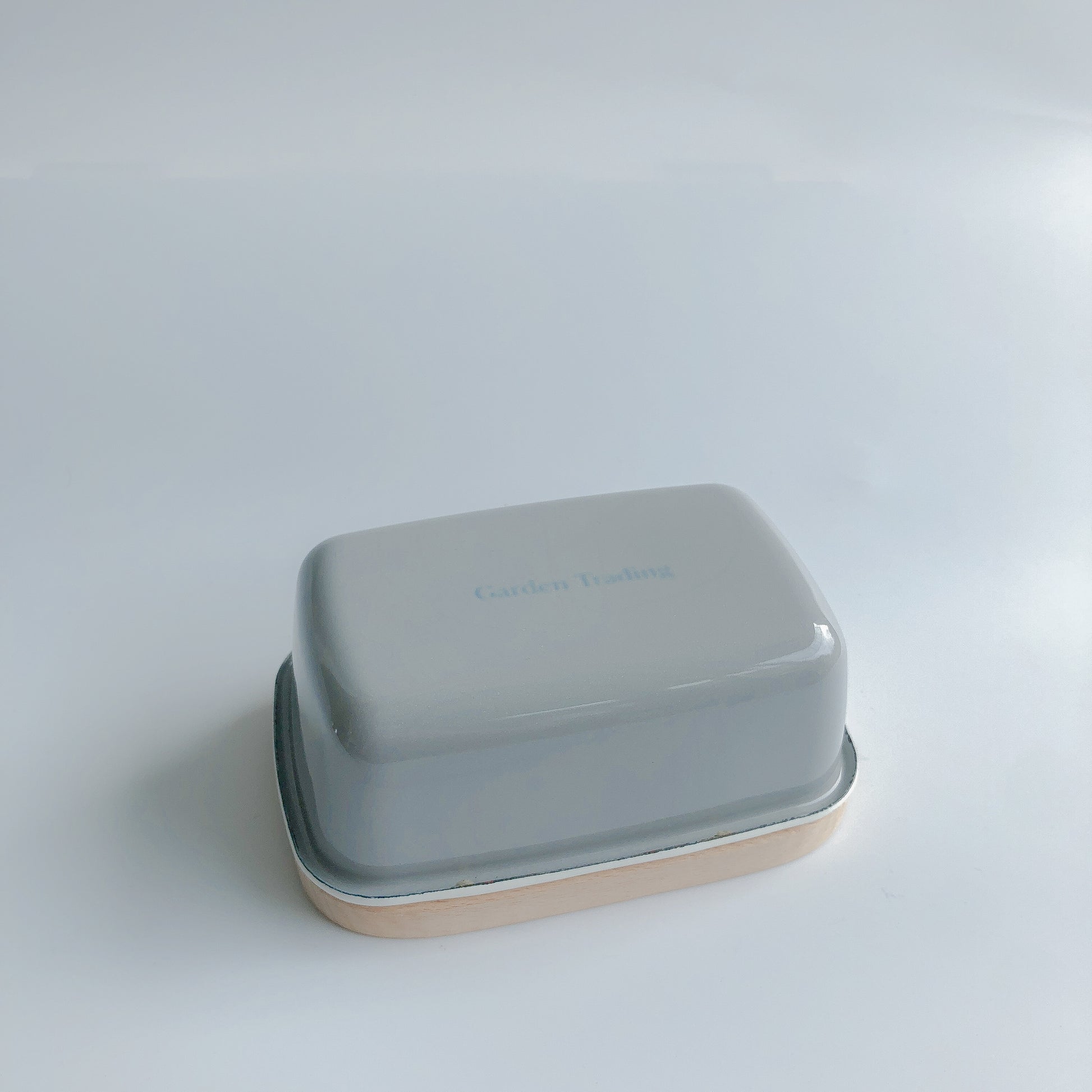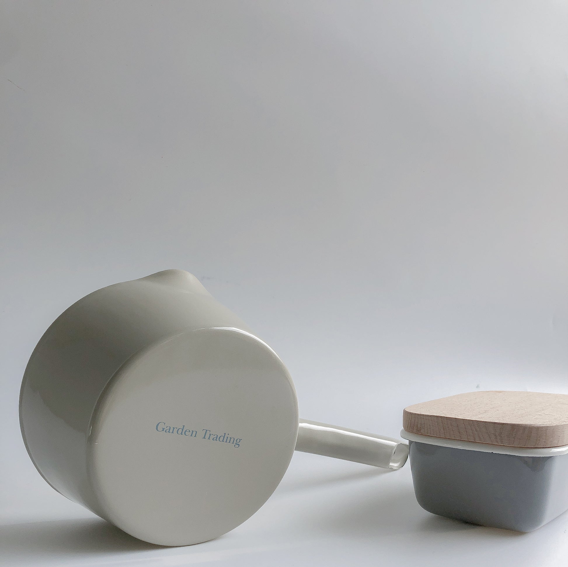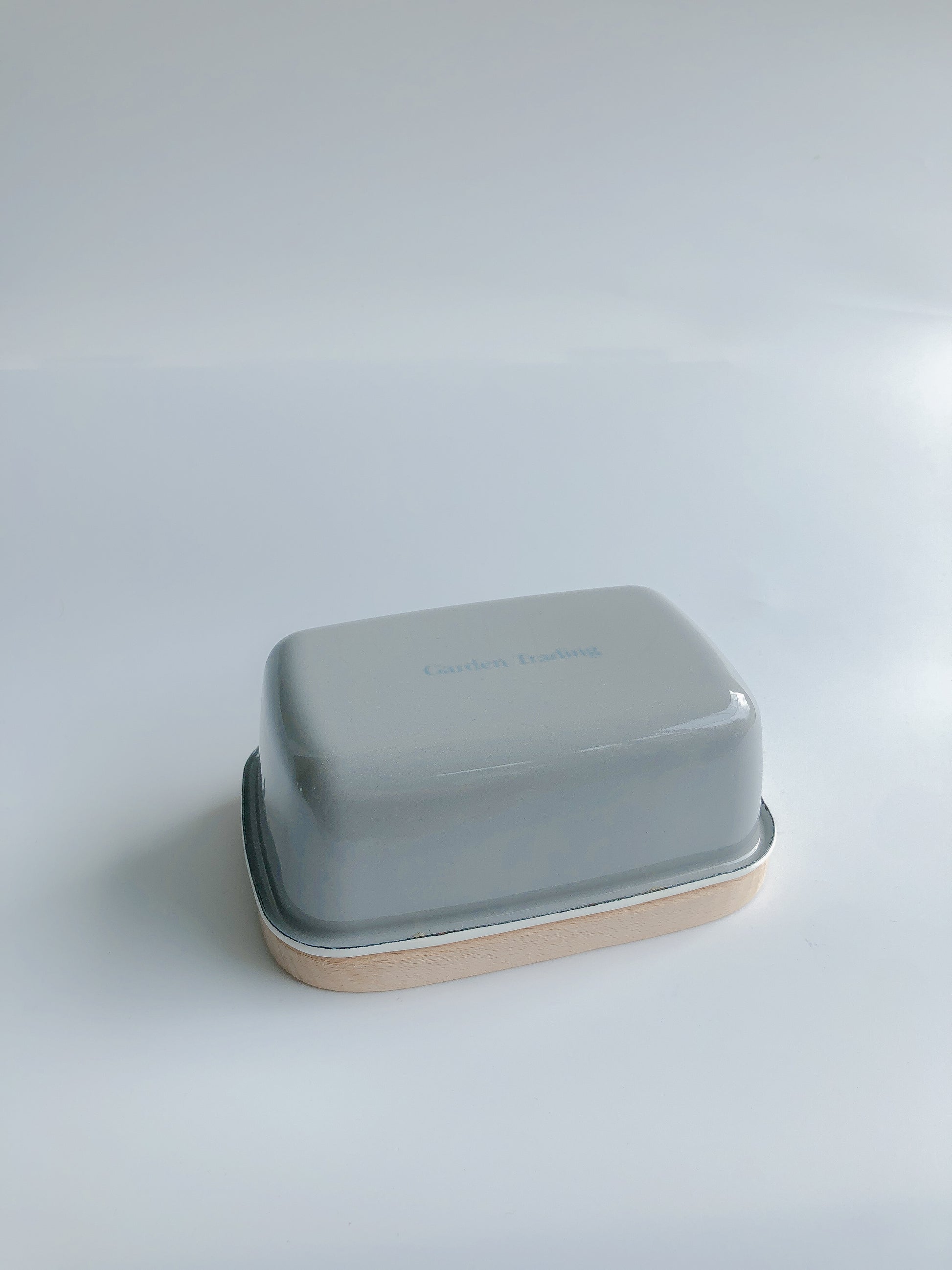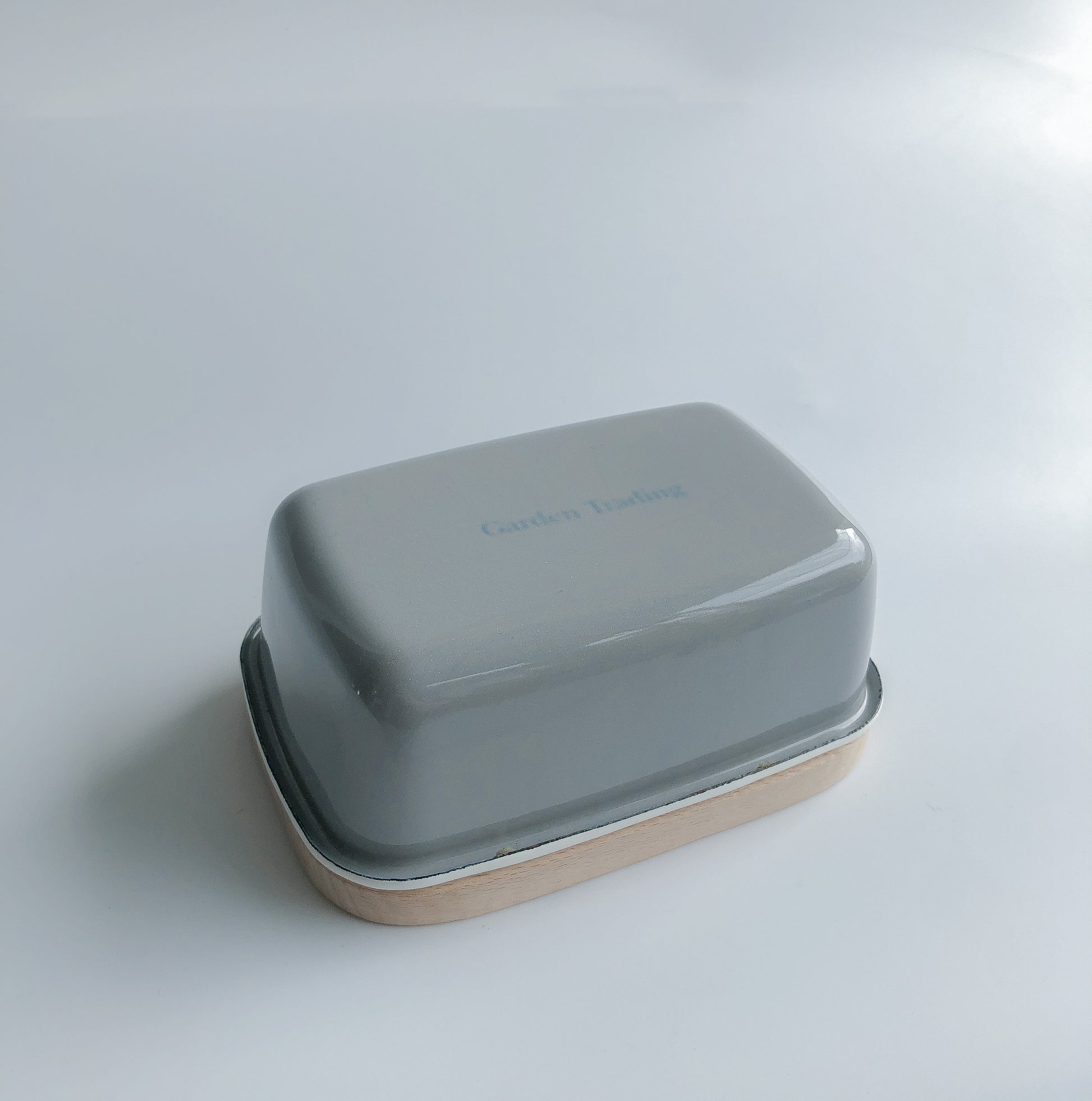 Grey Enamel Butter Dish with Wooden Lid by Garden Trading