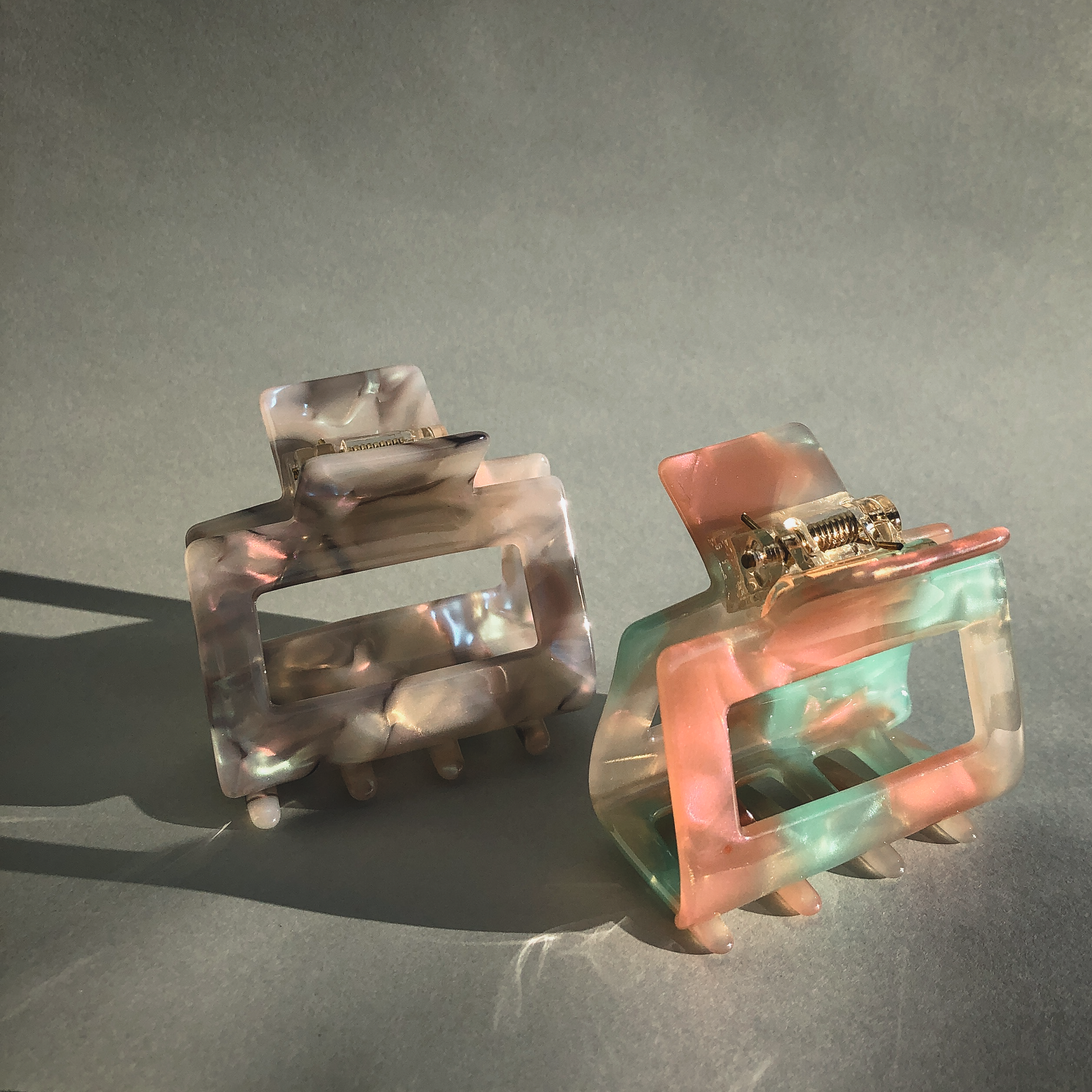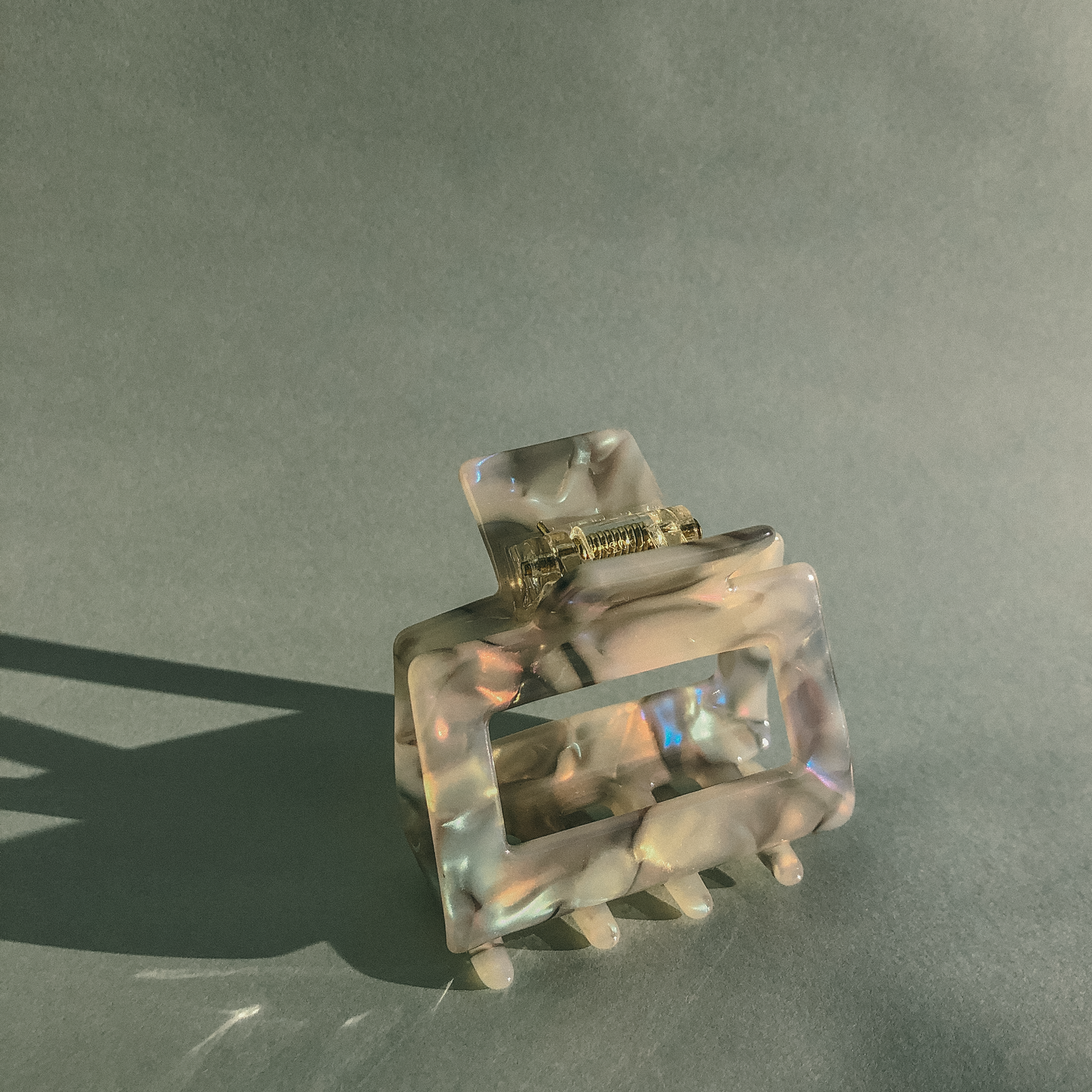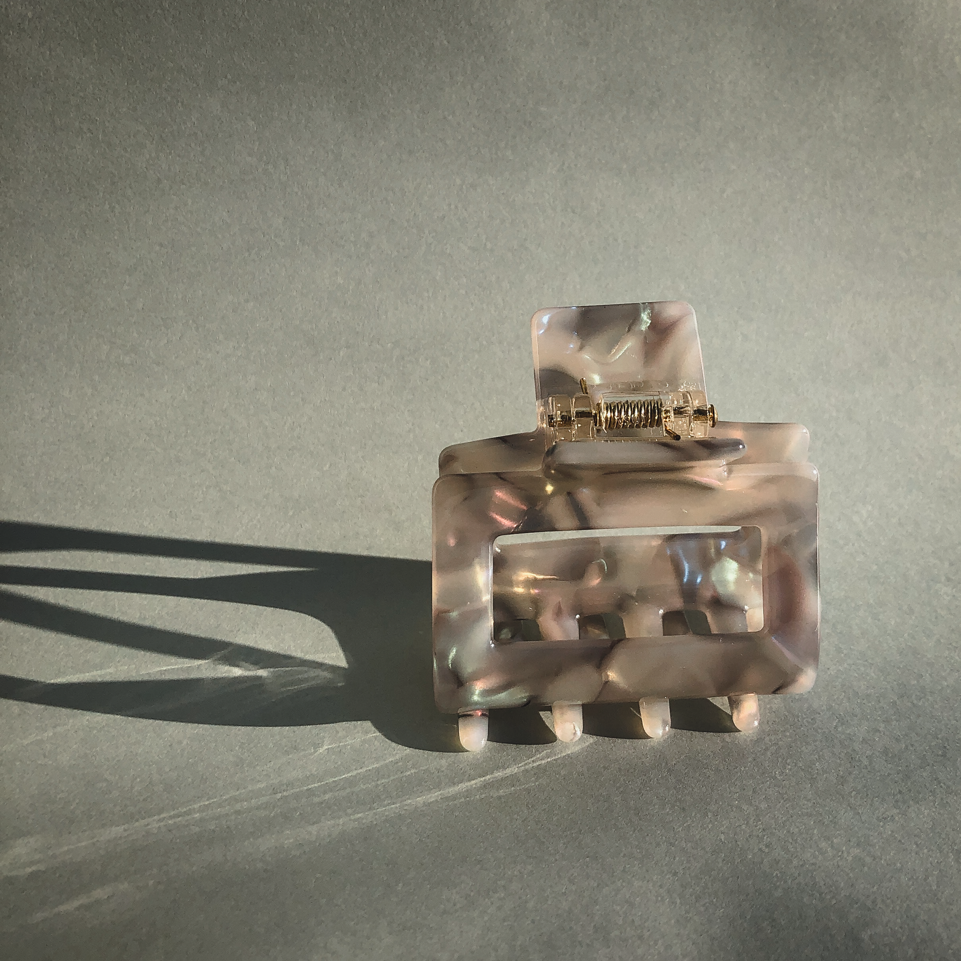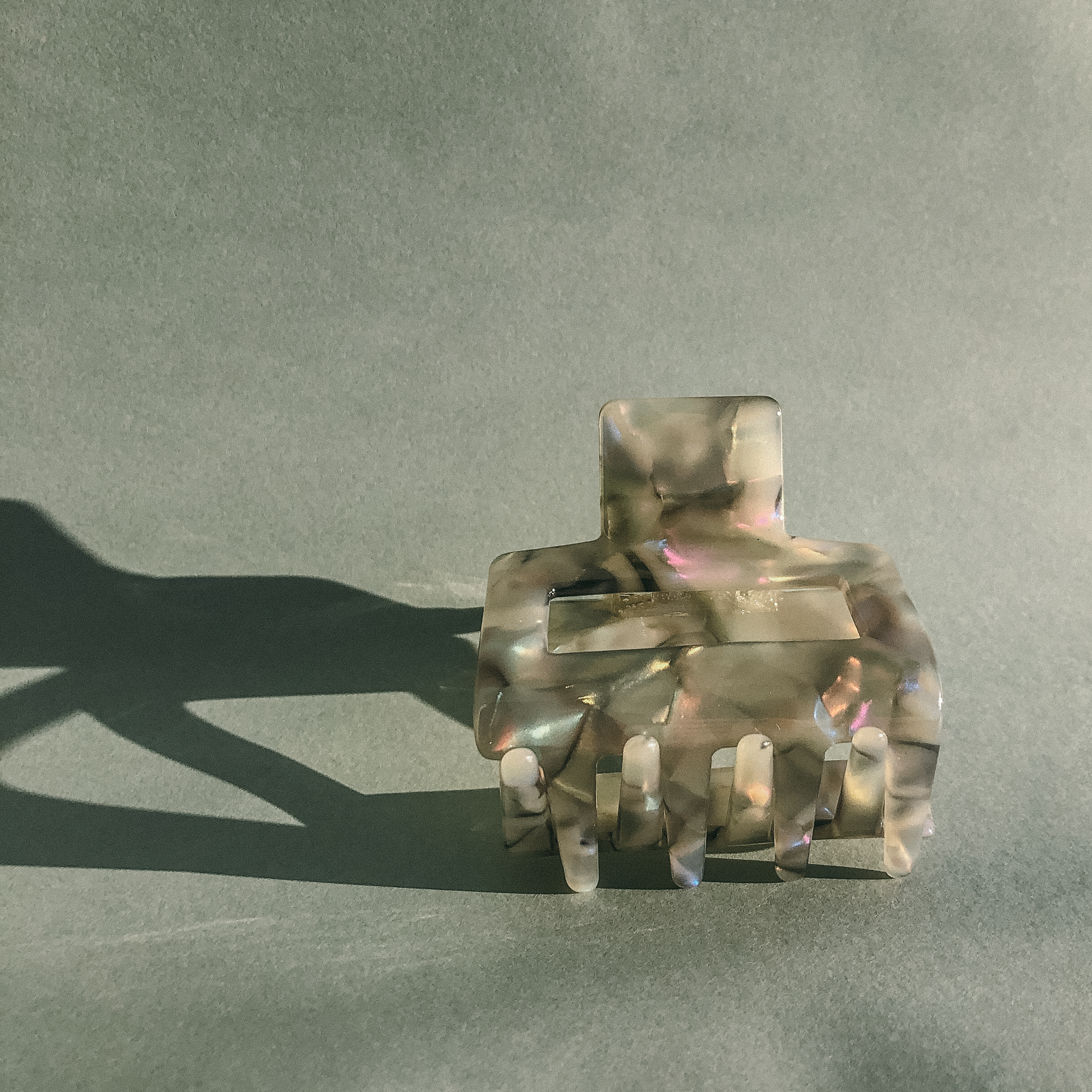 The Amy Hairclaw in Grey Shell is made of 100% acetate and measures 5cm x 4cm.