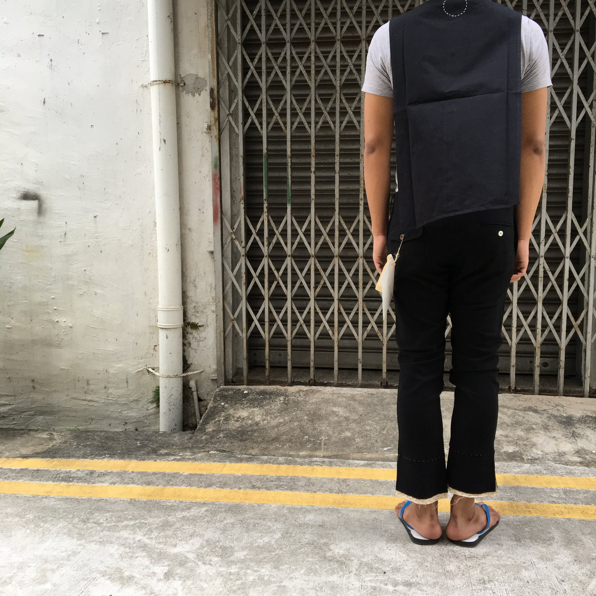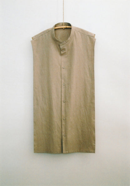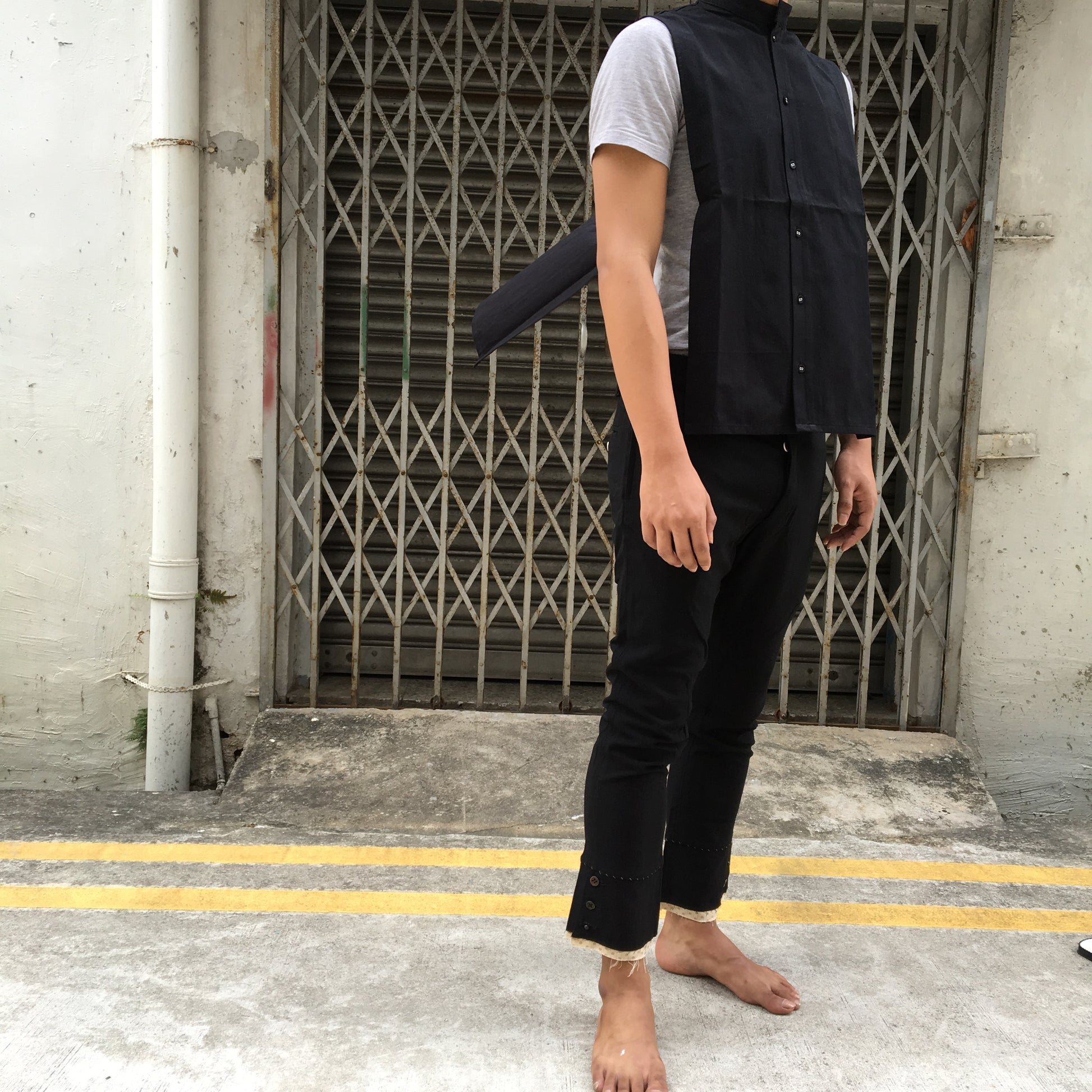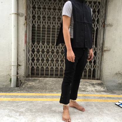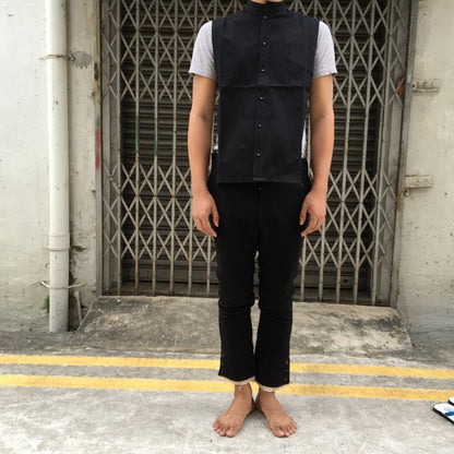 Mandarin Collar Button Down Shirt Part, worn as a vest. Perfect for layering. Available in Black.