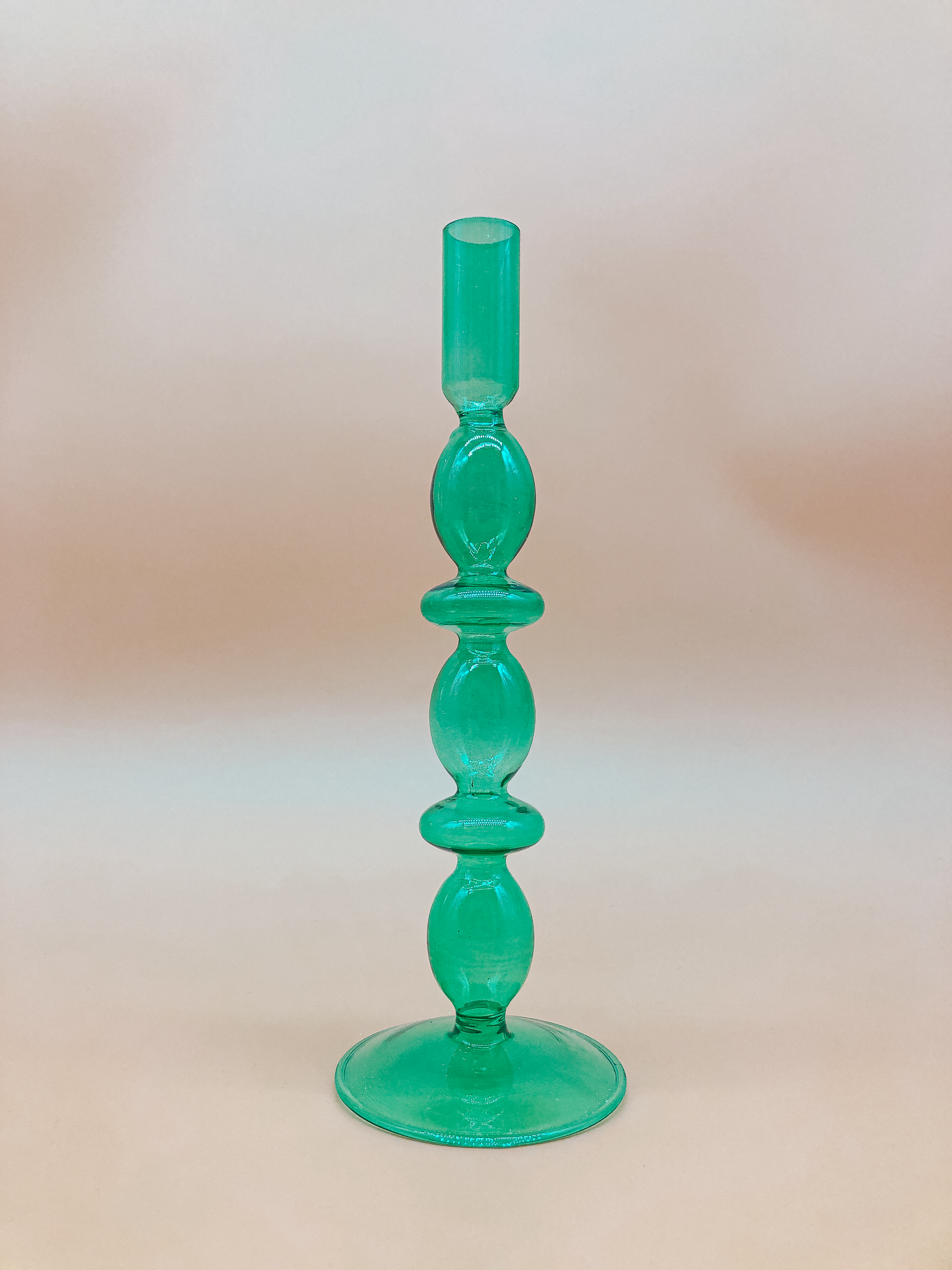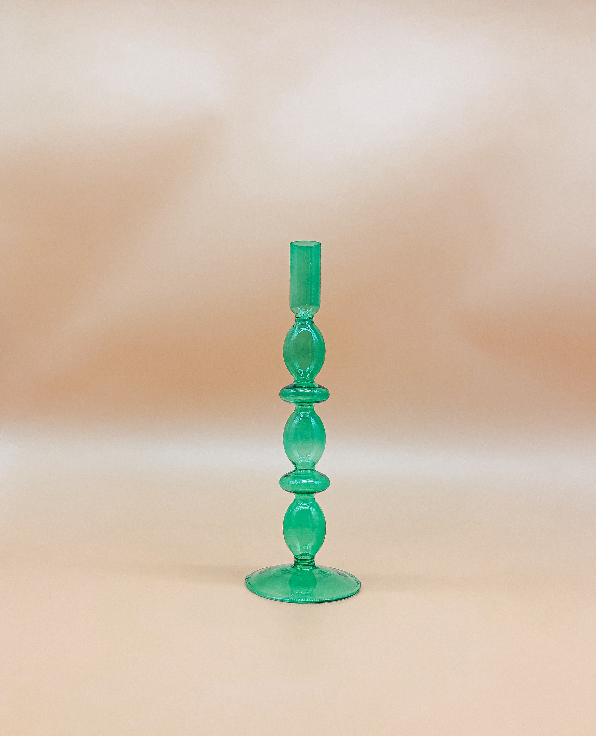 Our handmade glass candle holder comes in a minimal yet functional design, now available in a unique brilliant emerald stain, making it easy to clean off wax residue.